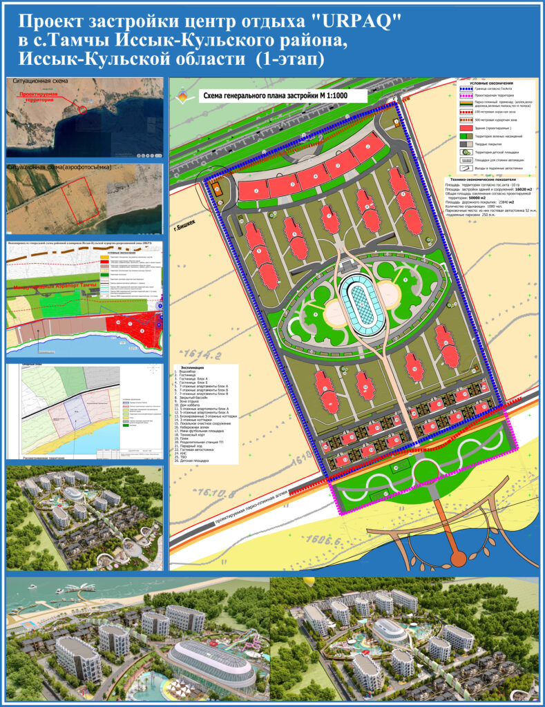 Проект застройки центра отдыха «URPAQ” в с. Тамчы Иссык-Кульского района Иссык-кульской области (1этап), разработан Департаментом и базируются на градостроительной оценке сложившейся планировки и застройки проетируемой территории и исходящий из актуализированных и детализированных проектных решений и расчетных данных по комплексной модернизации застройки, на основании утверждённой генеральной схемы районной планировки II этапа курортно-рекреационной зоны озера Иссык-Куль, принятой постановлением от 15 ноября 2024 года №688.
