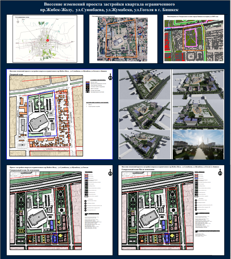 Рассматриваемый участок расположен в центральной части города Бишкек в квартале ограниченными улицами пр.Жибек Жолу, ул.Суюмбаева, ул. Жумабека, ул. Гоголя ».