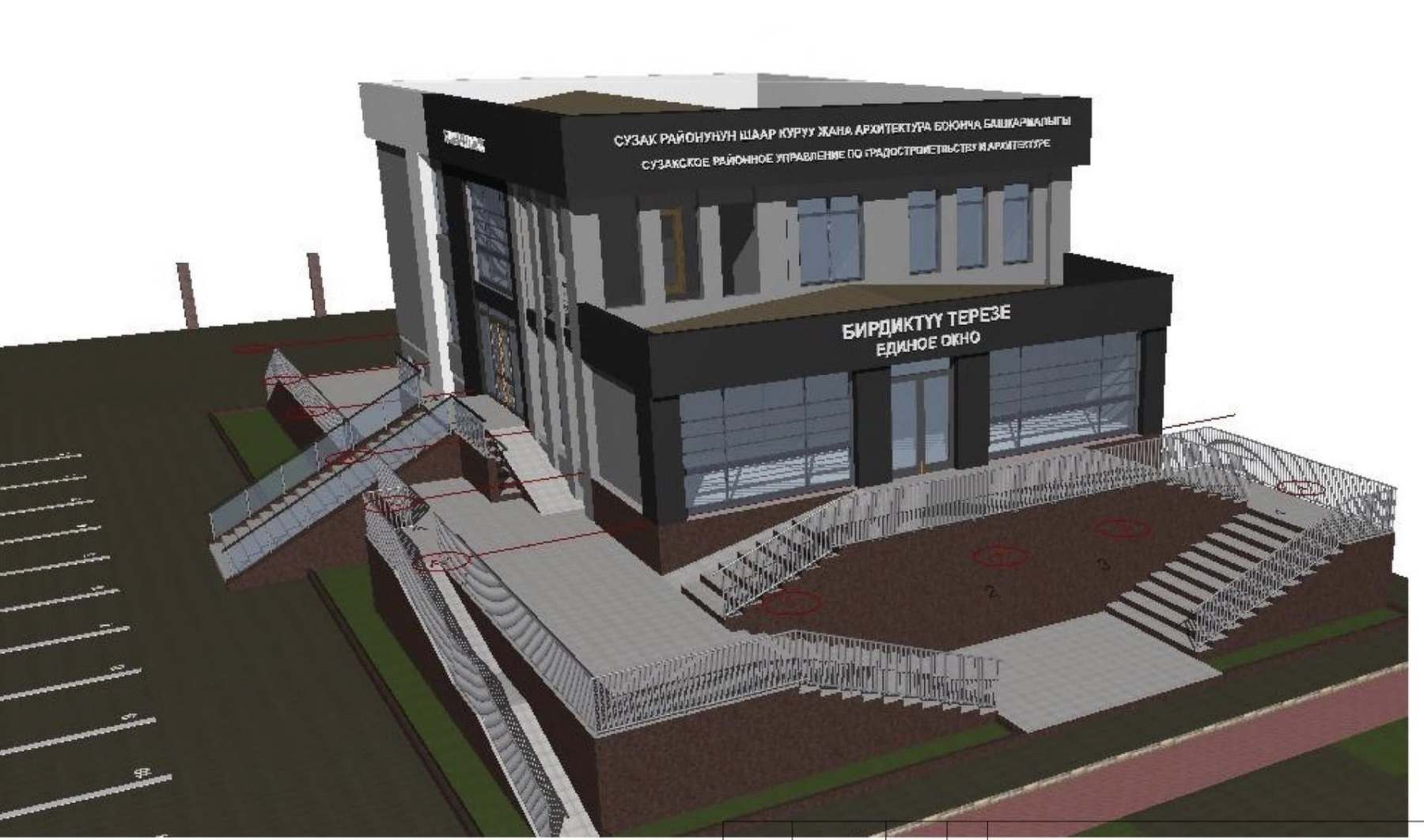 Алардын бири Жалал-Абад облусуна караштуу Сузак районунун Сузак айылы, Сатывалды Палван көчөсүндө курулуп жаткан Сузак райондук шаар куруу жана архитектура башкармалыгынын жаңы административдик имараты болуп саналат.