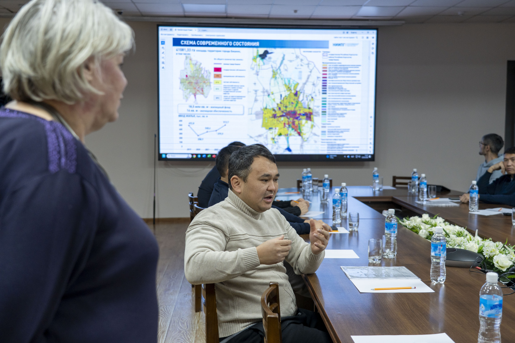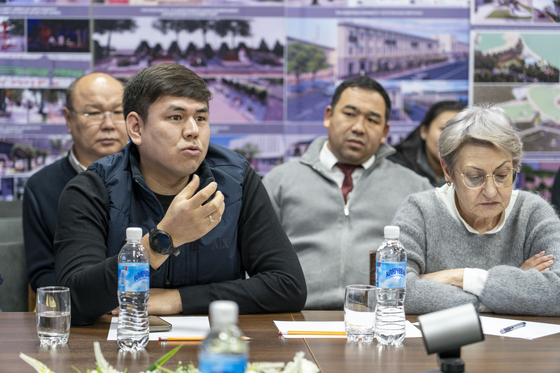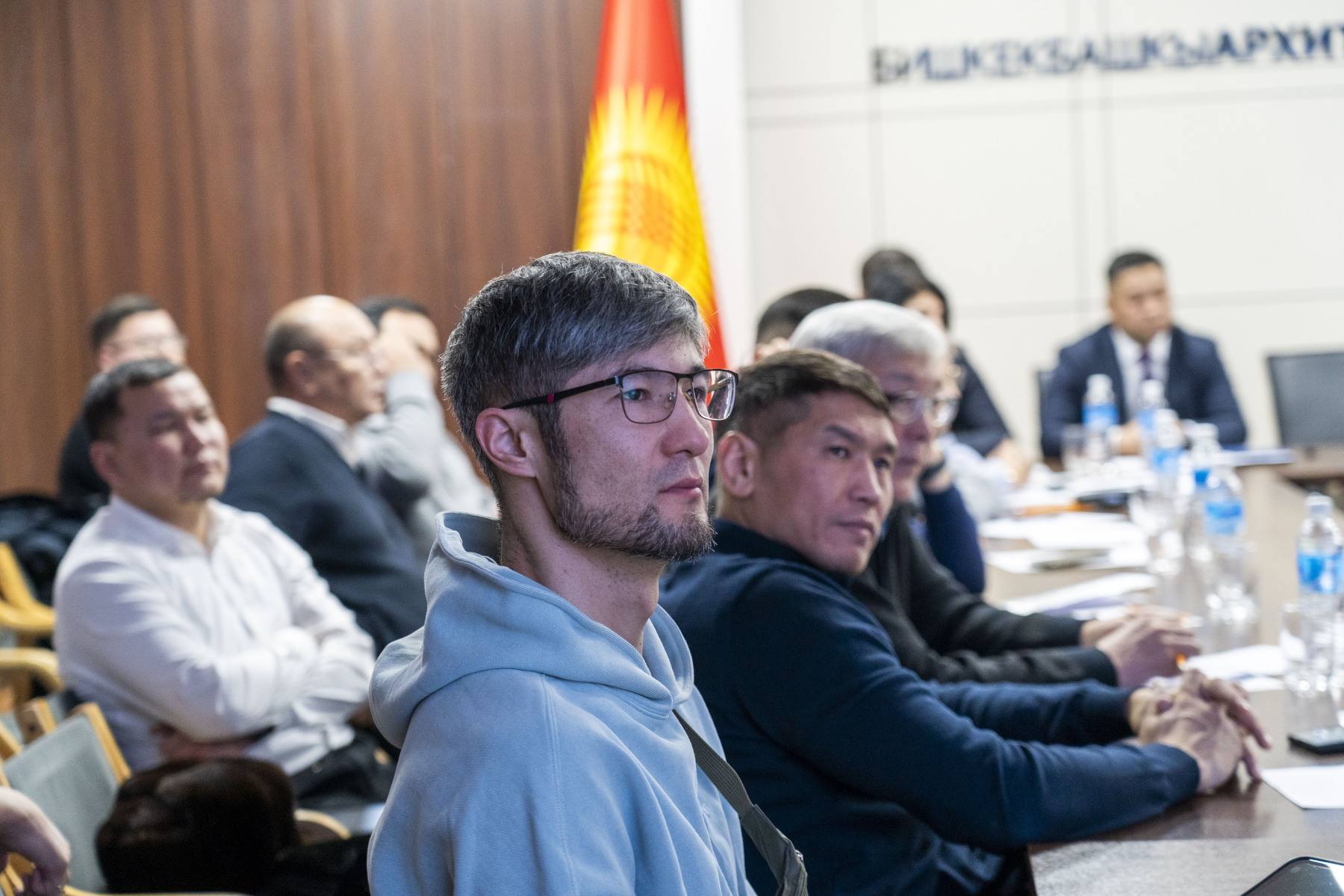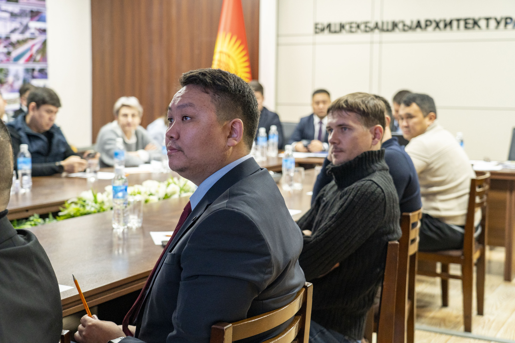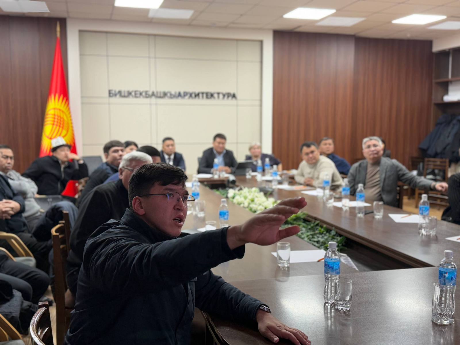 Сегодня, 22 января, в Главном управлении градостроительства и архитектуры города Бишкек при Департаменте градостроительства и архитектуры при Министерстве строительства, архитектуры и жилищно-коммунального хозяйства Кыргызской Республики состоялась встреча строителей и архитекторов с разработчиками генерального плана города Бишкек. В совещании приняли участие директор Департамента градостроительства и архитектуры Данияр Бапышов, начальник Главного управления градостроительства и архитектуры города Бишкек Медербек Кыдырмаев и вице-мэр города Бишкек Азамат Кадыров. Главный архитектор Научно-исследовательского института перспективных городов Ирина Гришечкина подробно рассказала о генеральном плане и выслушала все предложения и замечания собравшихся. Также в ходе совещания был высказан ряд предложений и мнений представителями частных компаний, работающих в сфере строительства и архитектуры.